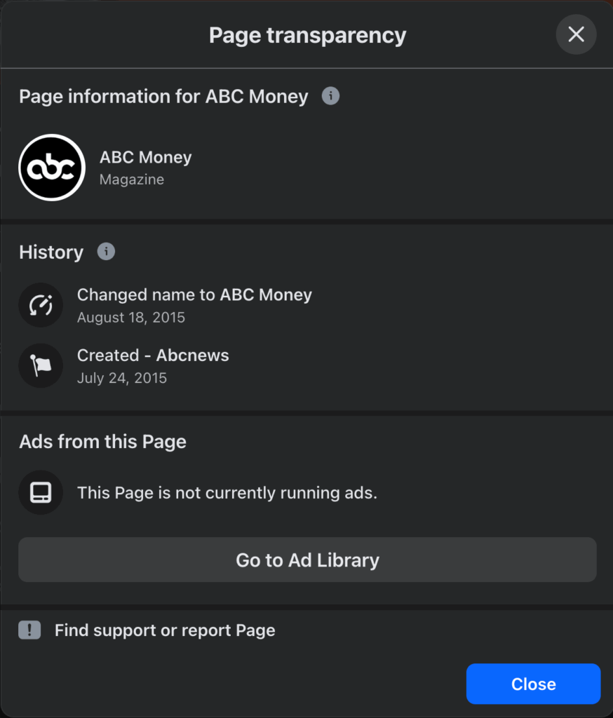 ABC Money appears to have been launched in July 2015 under the name “ABCnews” — a title quite similar to that of the entirely separate and well-established ABC News network in the U.S.