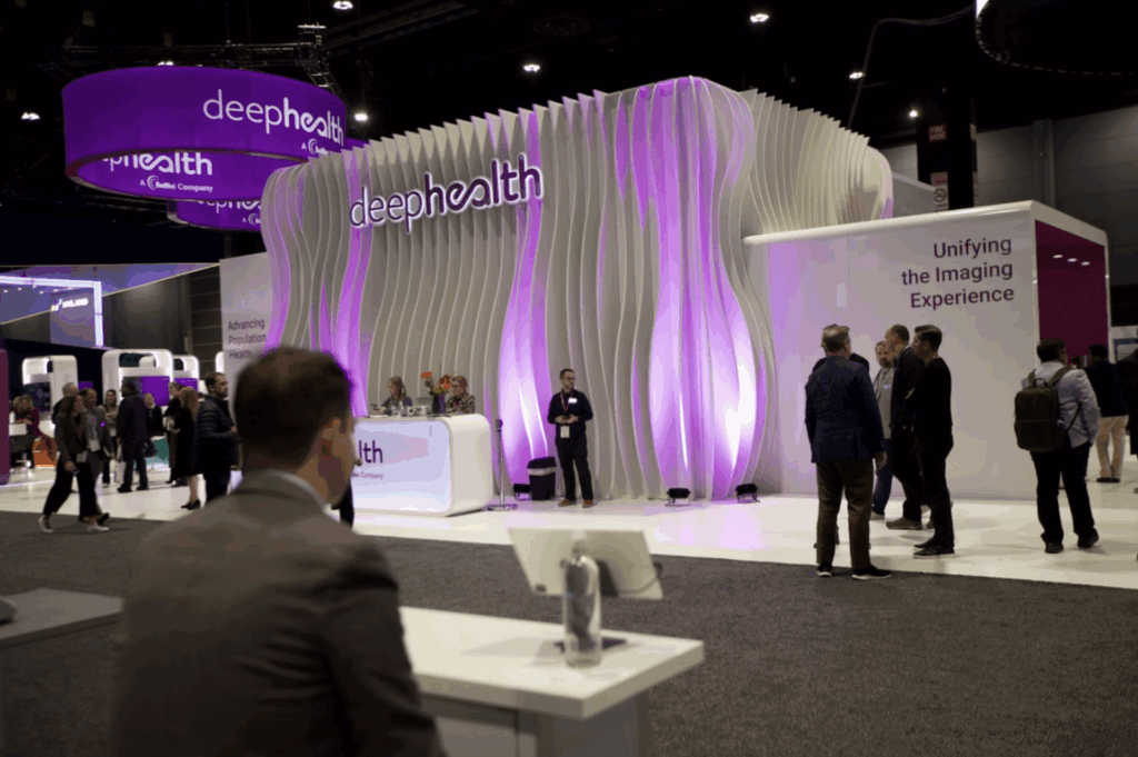 RadNet’s Chicago booth, bathed in lavender lights with a purple banner that read, “Unifying the Imaging Experience,” wasn’t the only one hawking AI solutions.