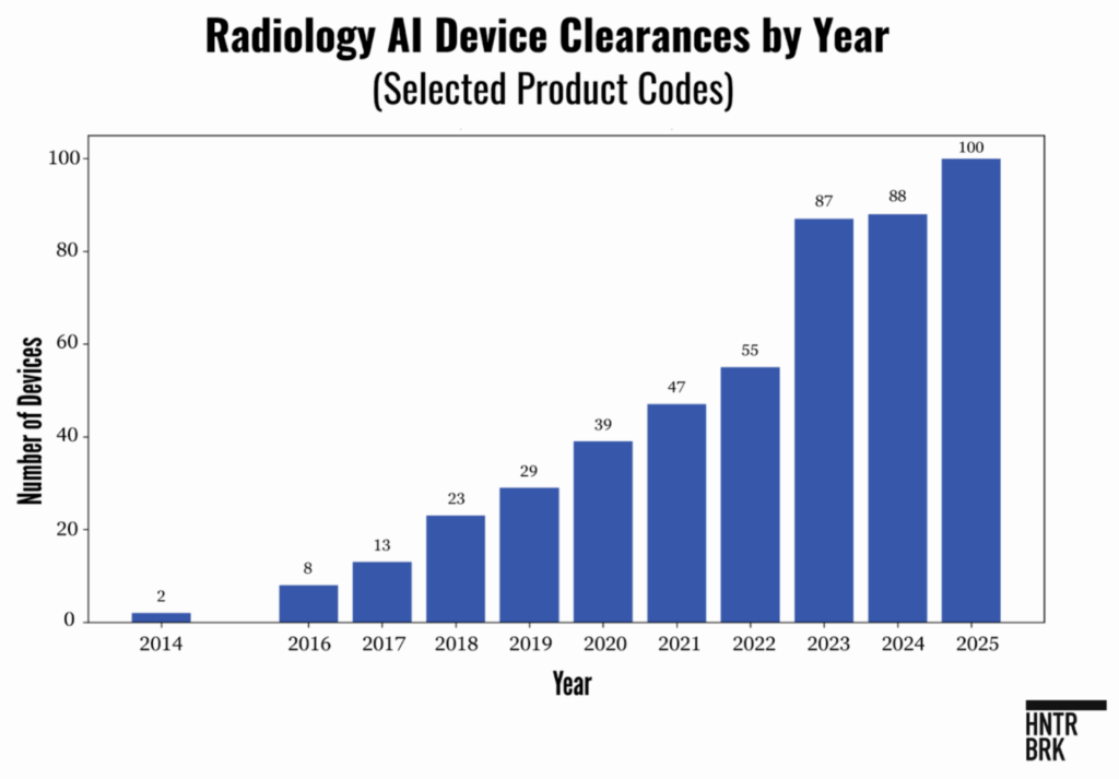 In a crowded field, RadNet’s technology doesn’t seem to stand out. Regulatory hurdles are not a moat, either: New AI-enabled medical device authorizations in radiology have nearly quadrupled since 2019.