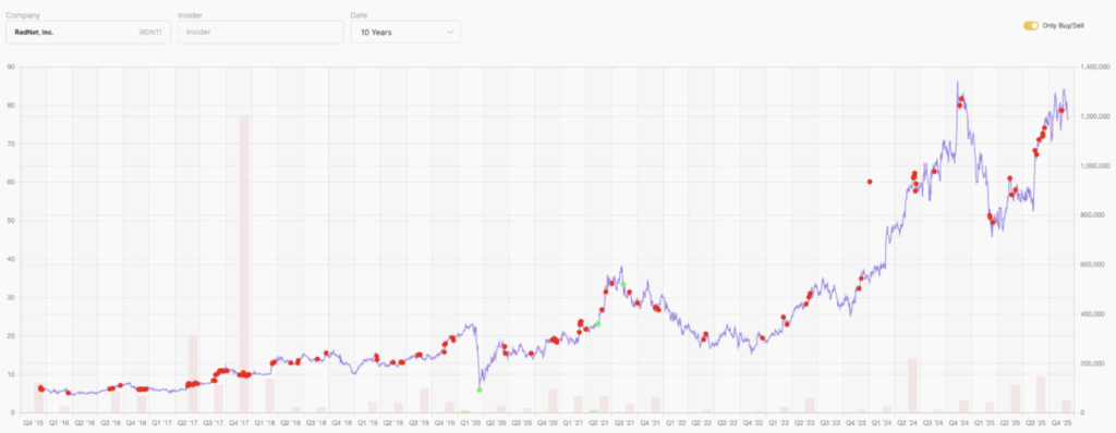 - Insiders are cashing out. Over the past two years, RadNet insiders have sold more than 780,000 shares — worth $50.9 million — without any open-market purchases.