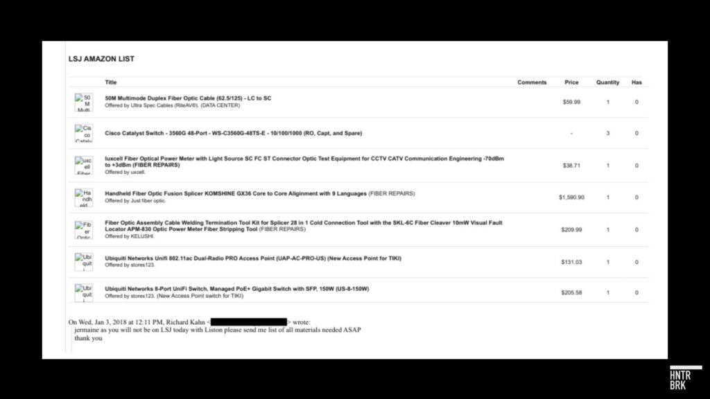 By January 2018, Ruan was compiling detailed procurement lists for network equipment. In response, Epstein wrote, “order today,” referring to an email list labeled “LSJ AMAZON LIST” that included multiple Ubiquiti products.