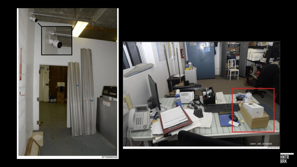 One photograph taken from the island by the FBI shows a box of what appears to be a UniFi Video G3 — Ubiquiti’s surveillance camera. Another photo of a storage area shows what appears to be the same camera — with Ubiquiti’s “U” logo on it — mounted near the ceiling. The FBI also seized a UniFi Video Recorder from the server rack, according to an FBI log of items collected from Little St. James.
